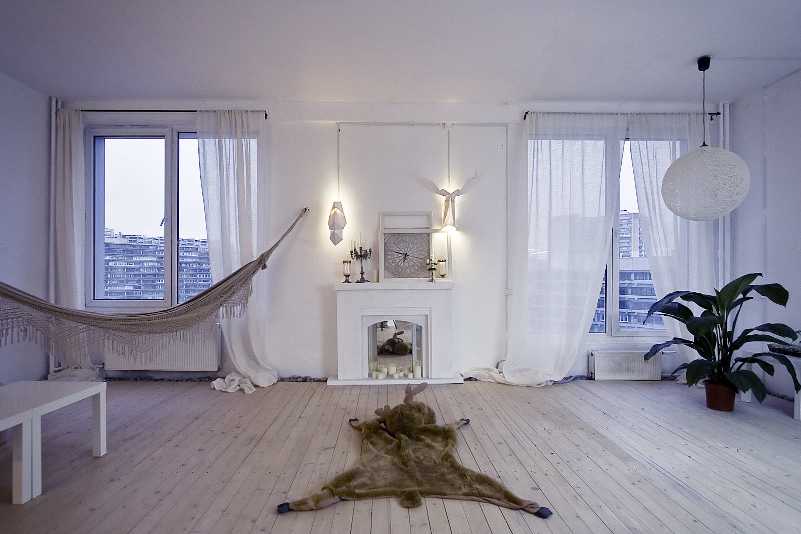 The place of false fireplaces in the interior is determined by you. They can be positioned in the center of the wall, in the corner of the room, or even suspended from the ceiling.