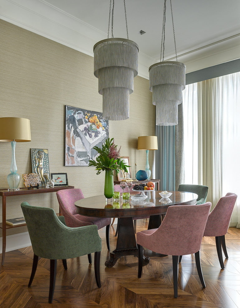 The most convenient solution for accommodating guests is chairs with soft upholstery, or half-chairs, which will make you feel comfortable.