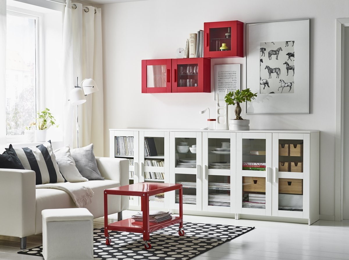 Start your living room interior design with ikea by choosing a storage system. Its appearance depends on the amount of free space and things that need to be stored.