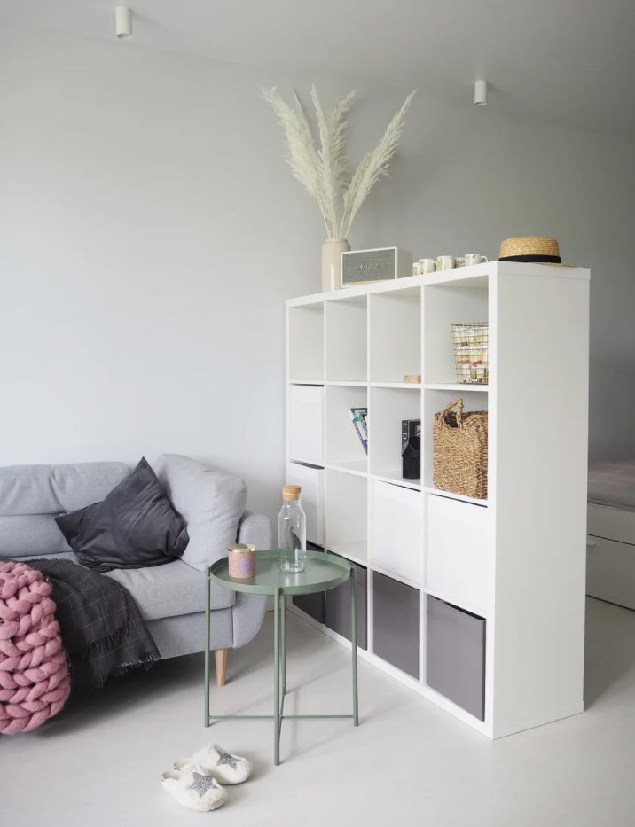 The famous KALLAX or a budget analogue FRIDLEV... The appearance of the cell rack primarily depends on the filling. In addition to it, do not forget to purchase baskets, doors, drawers.
