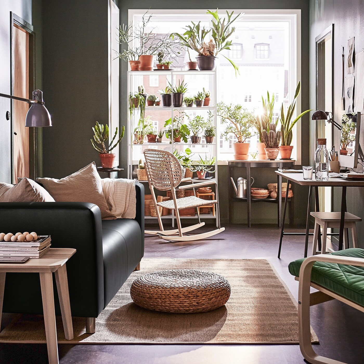 Poufs also come from the same series with a sofa or an armchair, or a completely different look: stylish wicker HAMLEGULT will decorate the Scandinavian interior, discreet gray OMTENKSAM will fit into a minimalistic design.