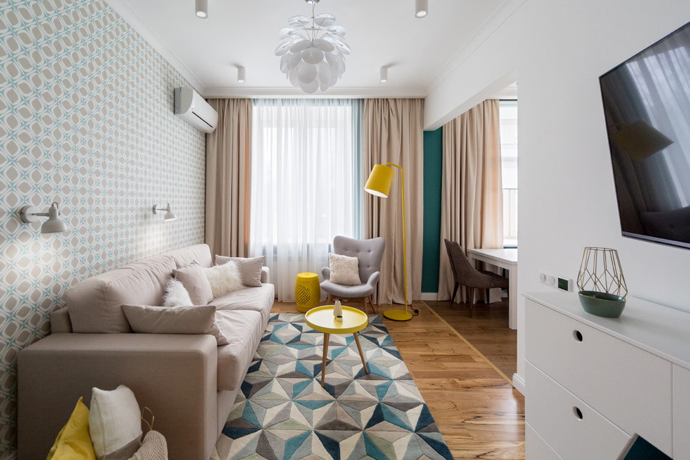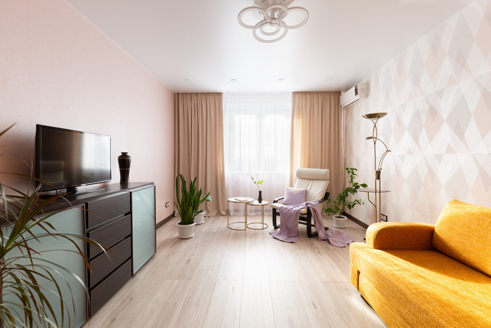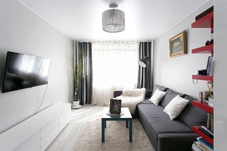 Finishing solutions for the living room in the Khrushchev apartment.