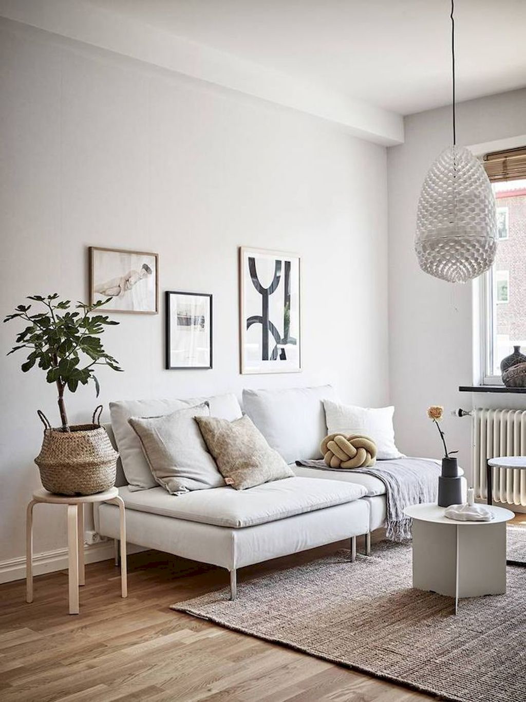 Estimate the size of your living room. Large paintings are hung in the spacious room, massive vases are installed. In a small one, instead of one large one, we place 2-3 smaller ones.