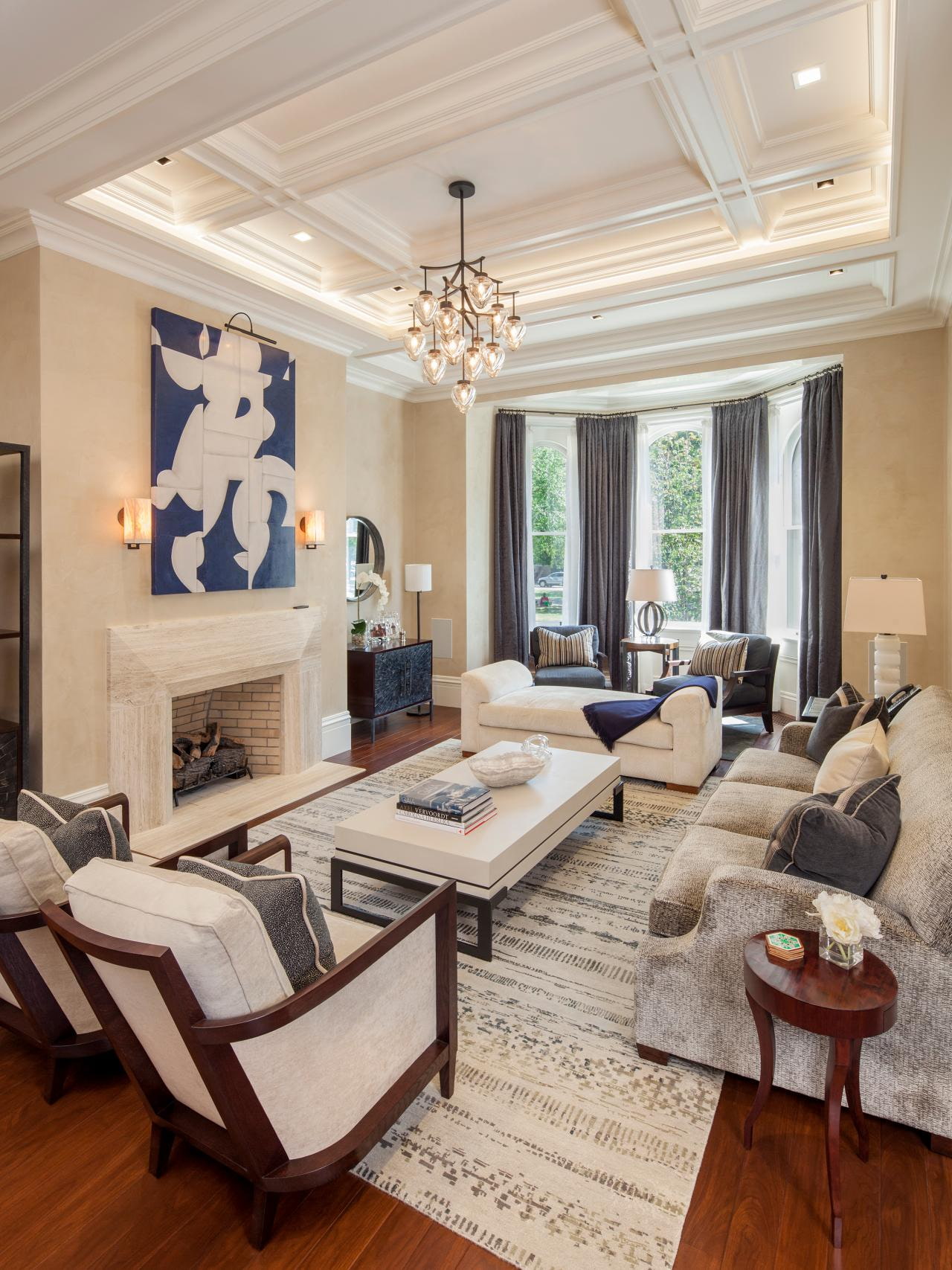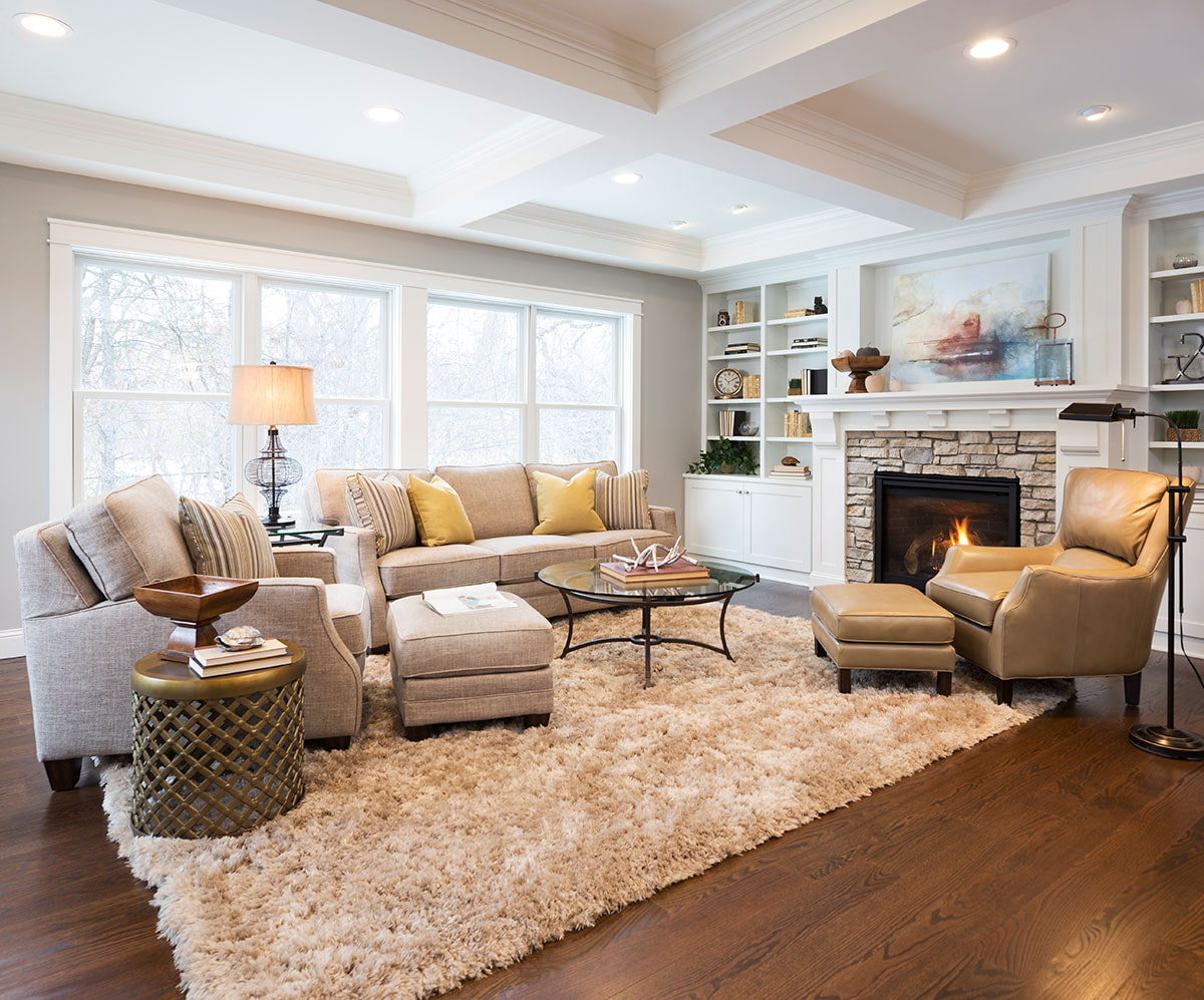 The most successful solution for maintaining the shape of a square is a symmetrical or circular layout. Define a centerpiece and arrange furniture around for a perfectly planned living room.