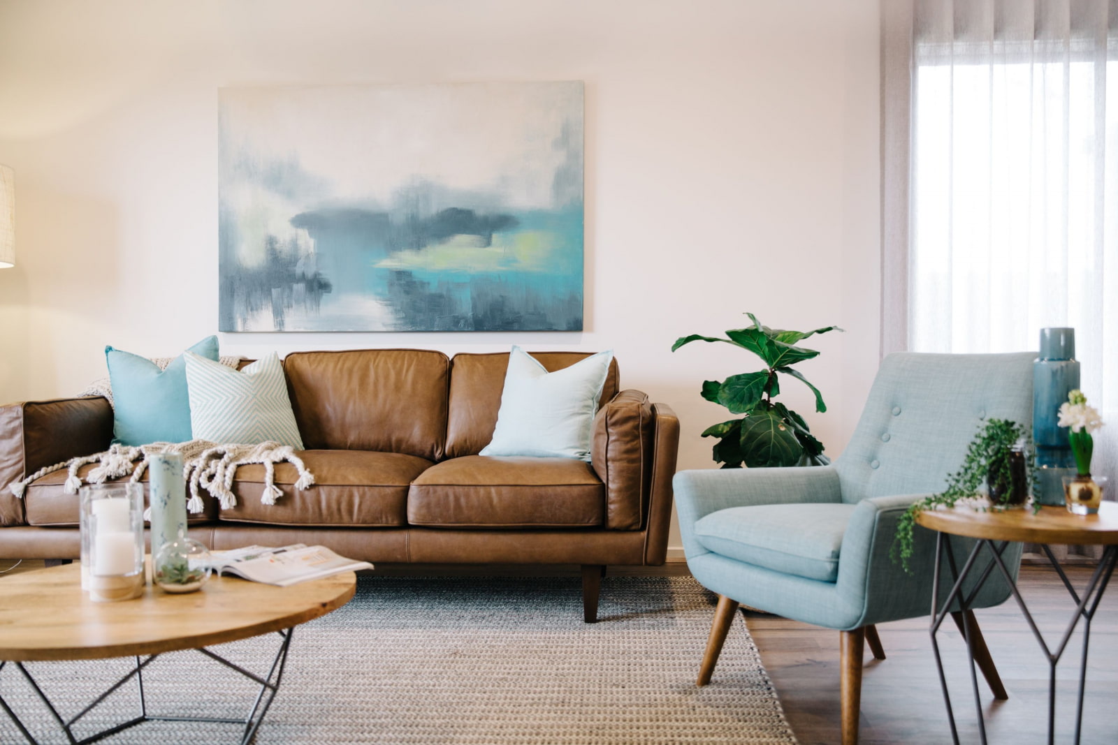 In the photo, an option for decorating the living room in blue