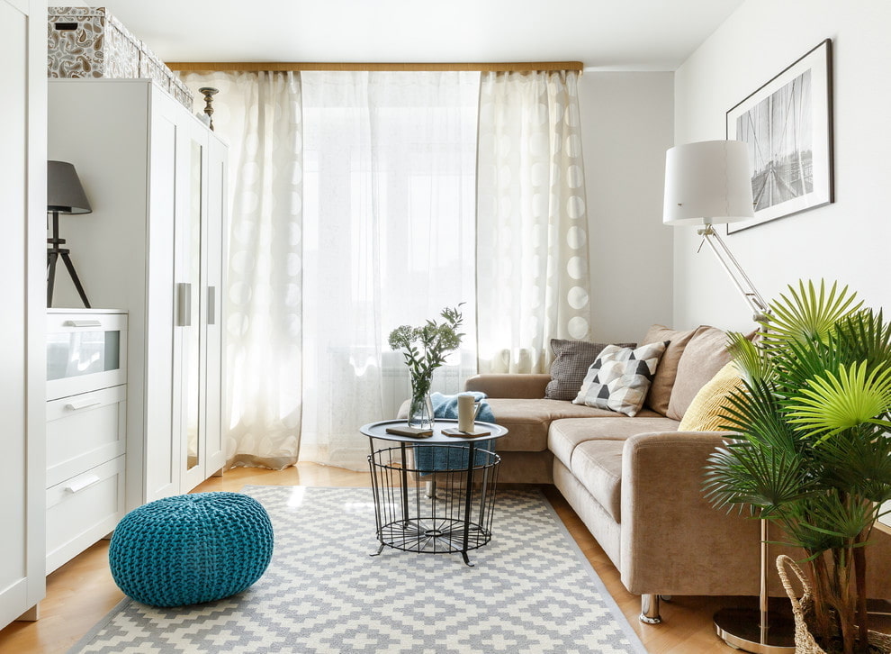 When decorating a small living room, your task is to take into account the dimensions and not make it even smaller. For this purpose, ditch large furniture sets, and also reduce the total number of items.