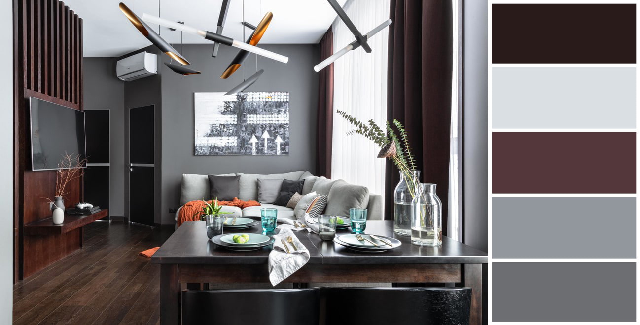 Based on Brown color, and the depth of the space is achieved through its midtones and the degree of saturation, including light gray and black.