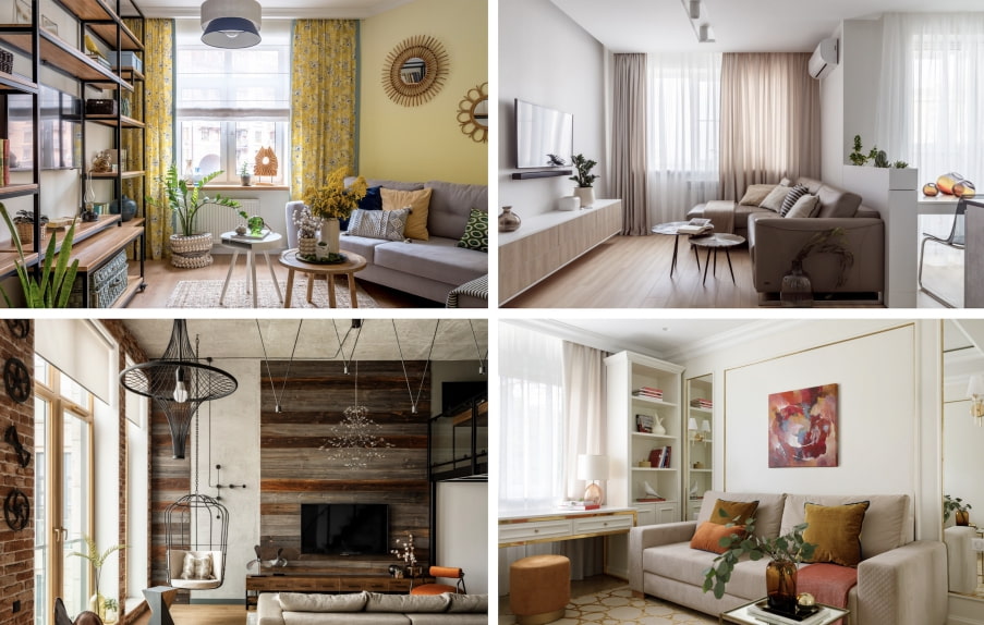 Add a mustard or honey accent to create a harmonious living room interior.