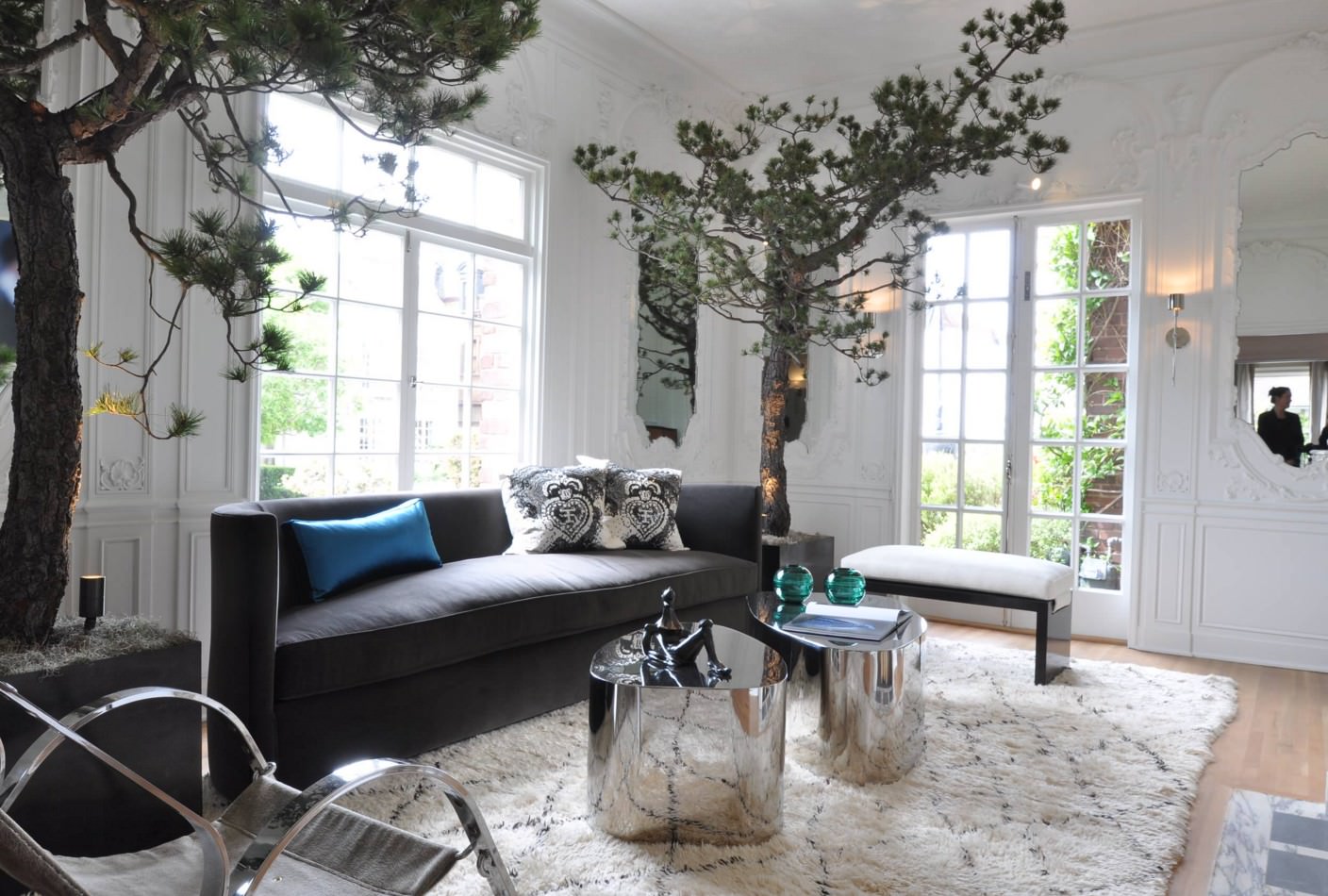 From the decor, you need to pay attention to the presence of a mirror, wall decor (frames and monosyllabic paintings), a simple chandelier, and sofa cushions. Bright or plain rugs and classic curtains bring warmth to modern interiors. Textiles in the living room should be as natural as possible, and without layering textures.