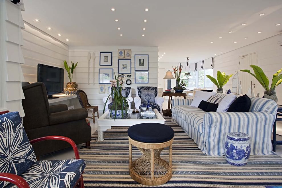 Be careful with bright strokes, as this will be a variation of the style. Nordic rugs, logs, deer antlers, ceramics and photographs will enliven the space.