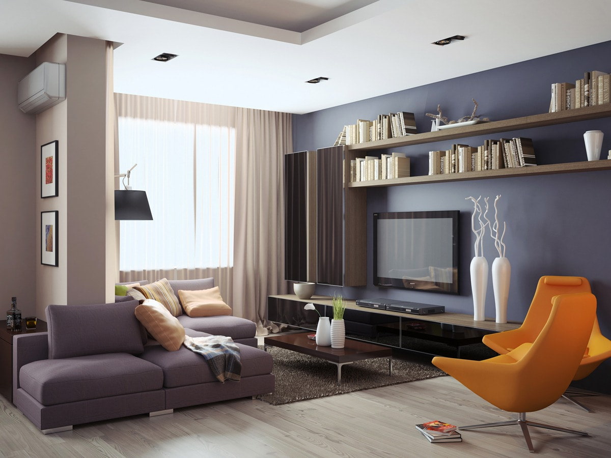 A color that can fit into any interior. Visually expands the living room space, making the room more airy and light.