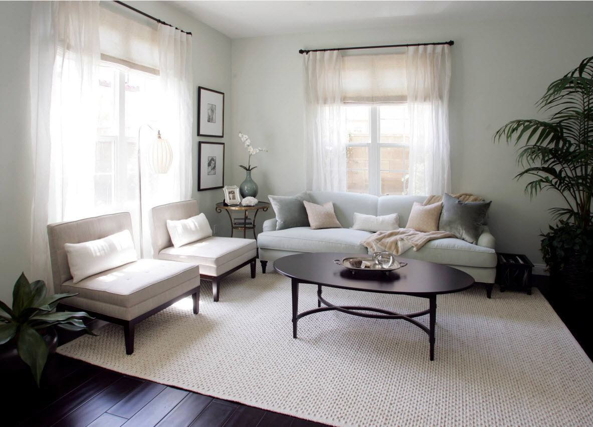 In order to remove unnecessary formality in the living room, it is recommended to frame the blinds with light tulle.