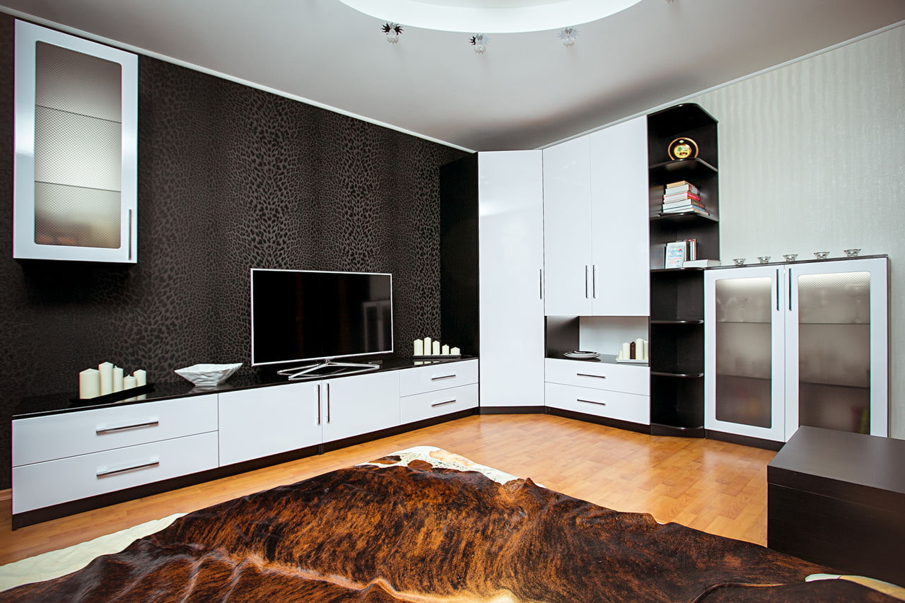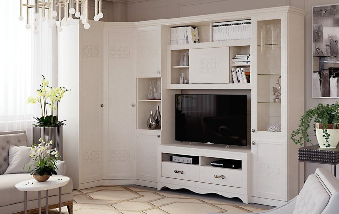 Types of corner cabinets in the living room