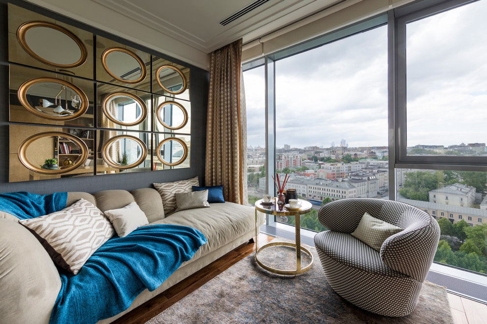Recommendations for the location of mirrors in a living room located in an apartment or house: