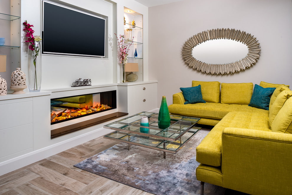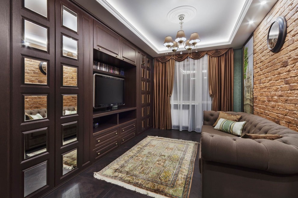 Mirrored surfaces, thanks to the reflective effect, will bring a peculiar zest to the interior, and while watching TV, they will make the atmosphere truly incredible.
