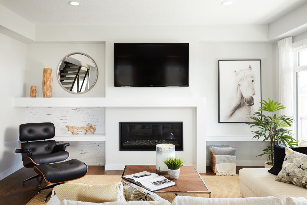 By using a decorative element such as a mirror placed over the fireplace, combined with small exquisite lamps or beautiful items and collections placed on the mantelpiece, it is possible to create the main center of attention and form a more attractive design.