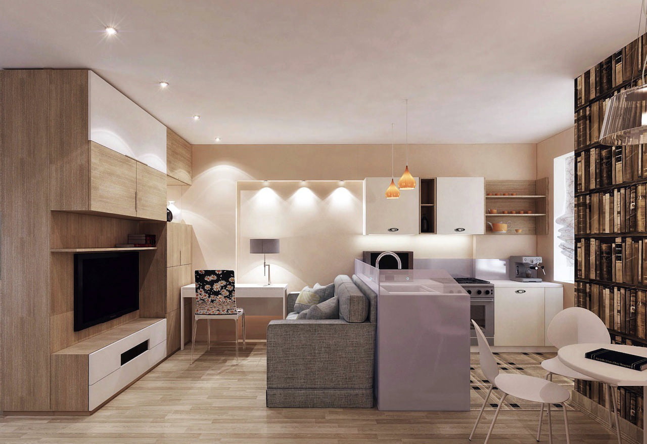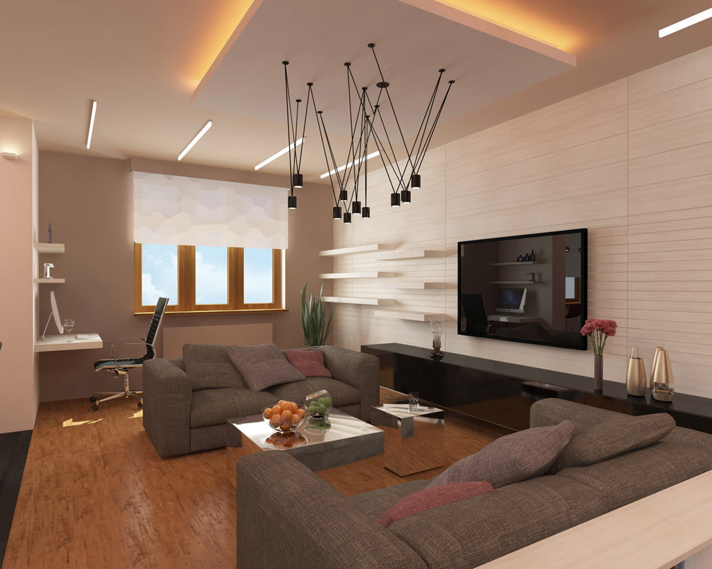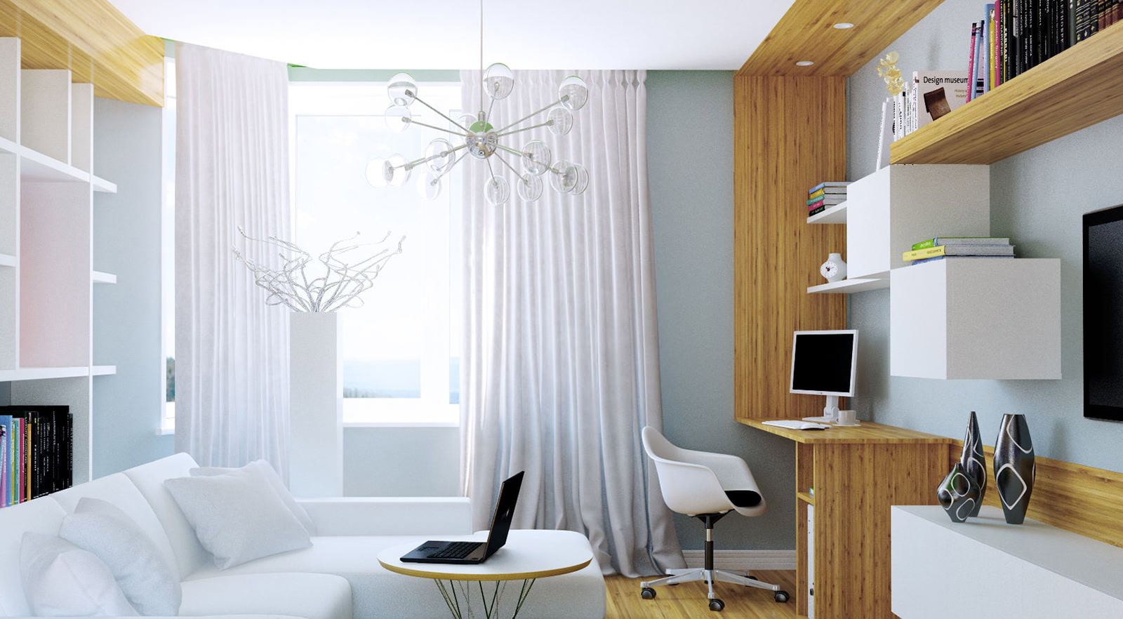 So that nothing distracts during work, it is necessary to somehow isolate the working space from the recreation area. Living room design with study usually provides for such a separation, and it is done using various techniques.