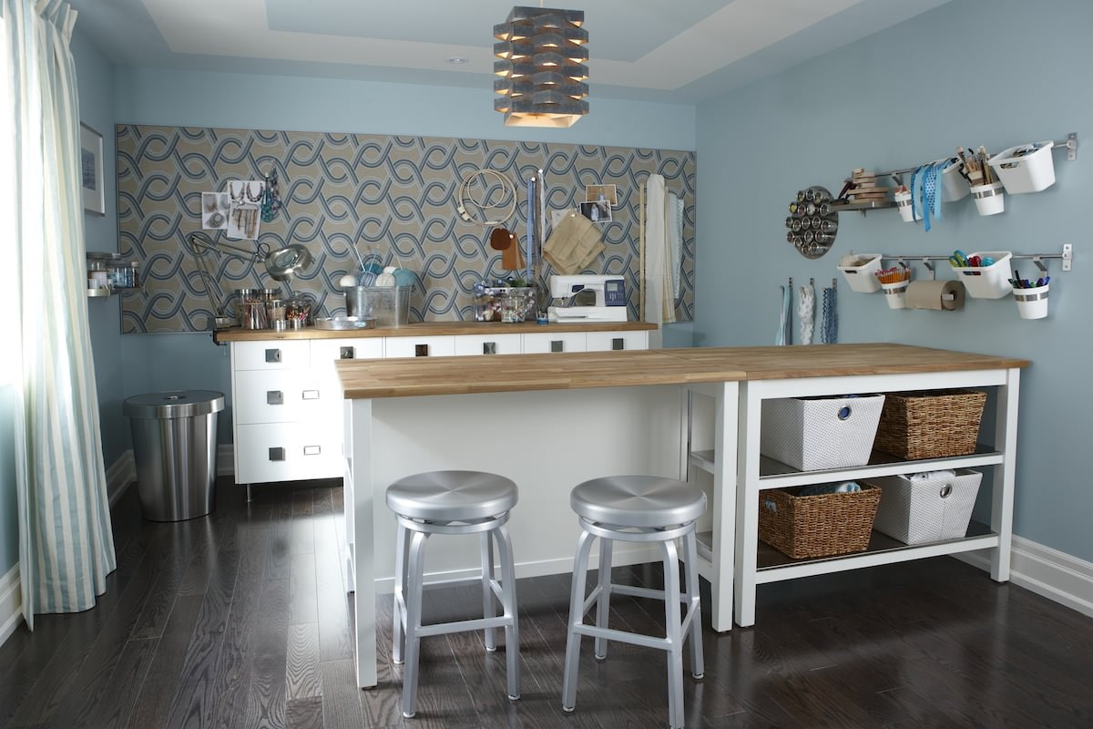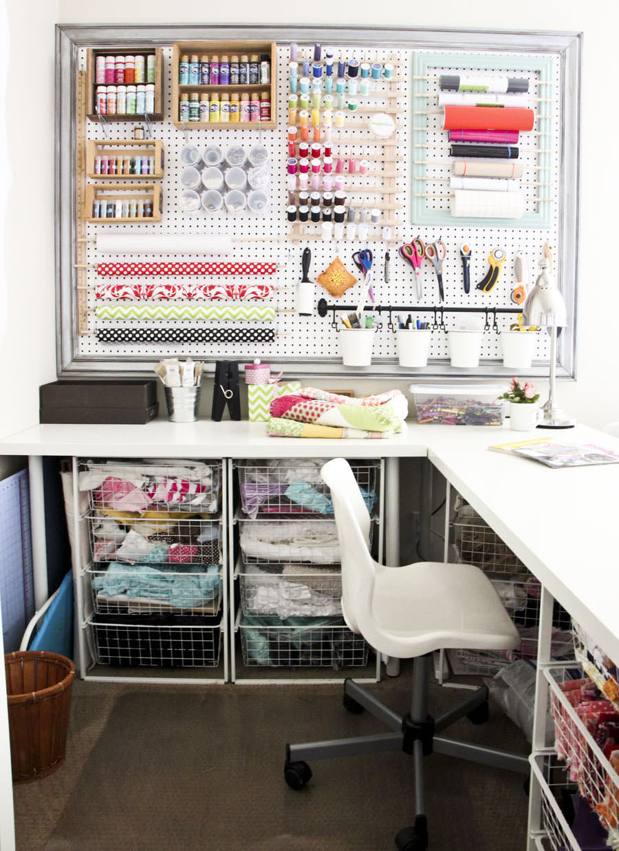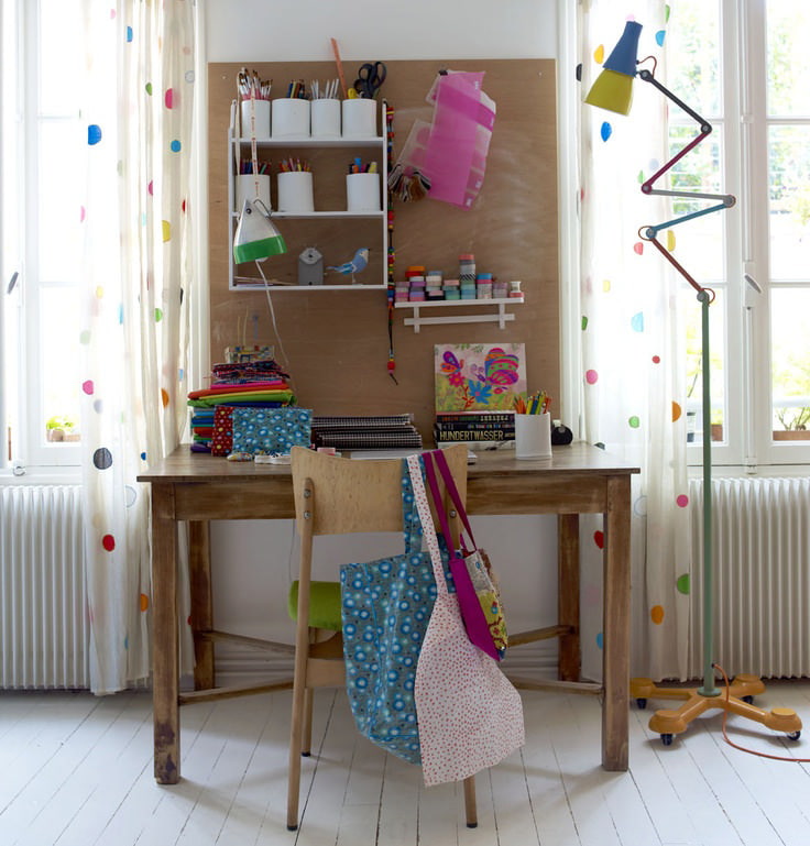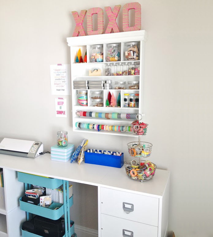 The workplace of the needlewoman is arranged much more complicated than the standard one, and one cannot do with a tabletop and a lamp alone. The craftswoman needs various little things at hand, which means that it is necessary to think over a storage system for them, convenient and beautiful. It is necessary to solve this problem of organizing space in two stages: first on the scale of the room, and then on the scale of the workplace.