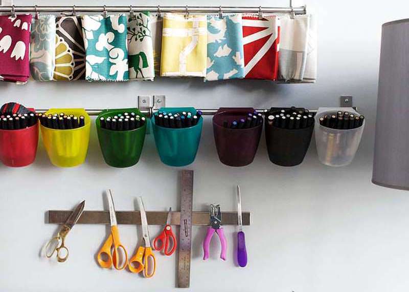 This is not the only “kitchen” device that is useful for arranging a craftswoman's corner: a knife magnet will perfectly hold scissors, rulers, screwdrivers and other metal tools.