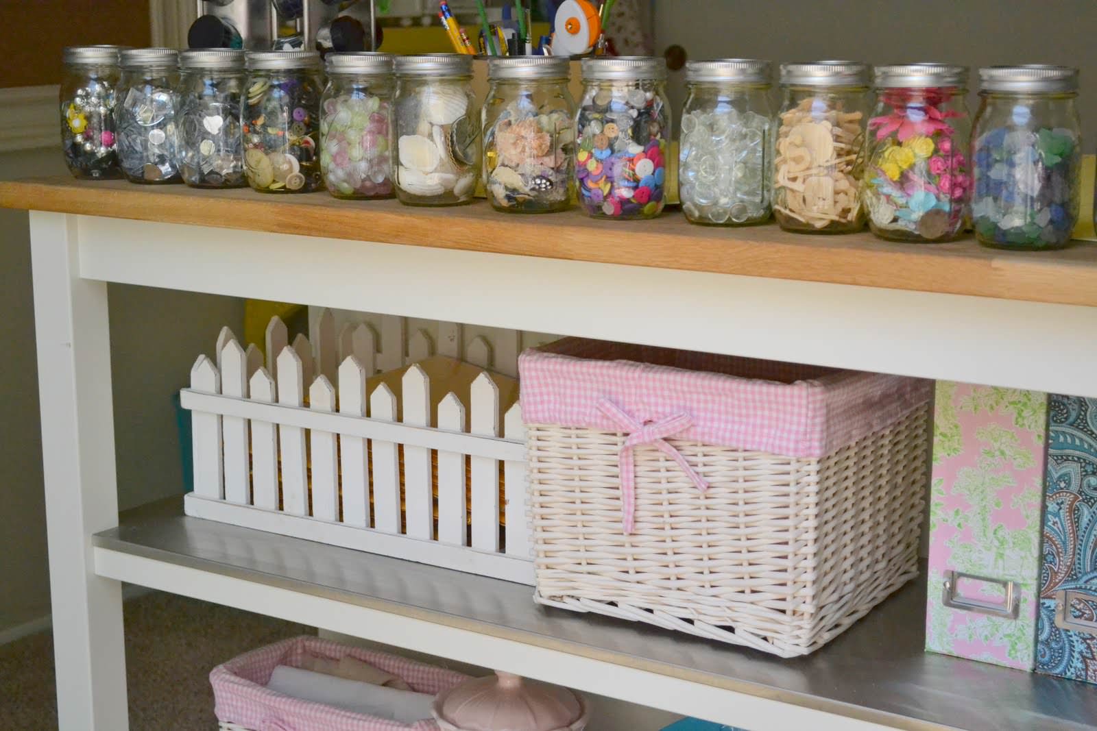 Advice: The ideal option is to use boxes and jars made of transparent material, or under a transparent lid when organizing a needlewoman's workplace. If the boxes are opaque, you need to stick stickers on them, on which you write what is contained there. You can also hang pretty tags.