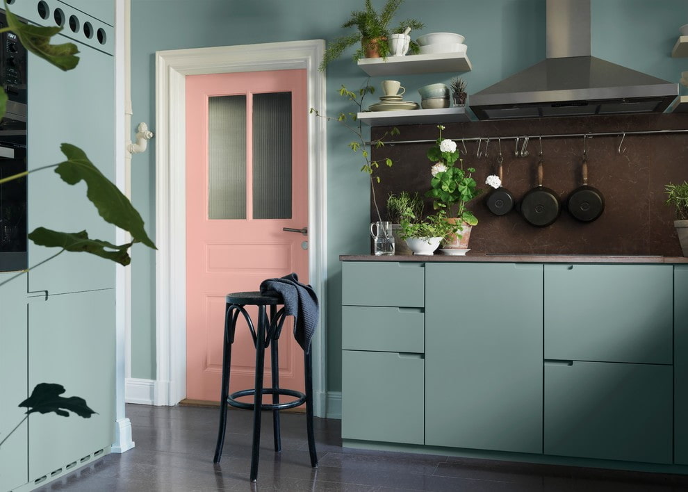 | Green | A symbol of nature, spring, it calms and adjusts to work. Reduces the negative influence of dark colors in the kitchen - black, purple. Prolonged exposure to green can lead to distraction. Close shades: pistachio, olive, light green. |