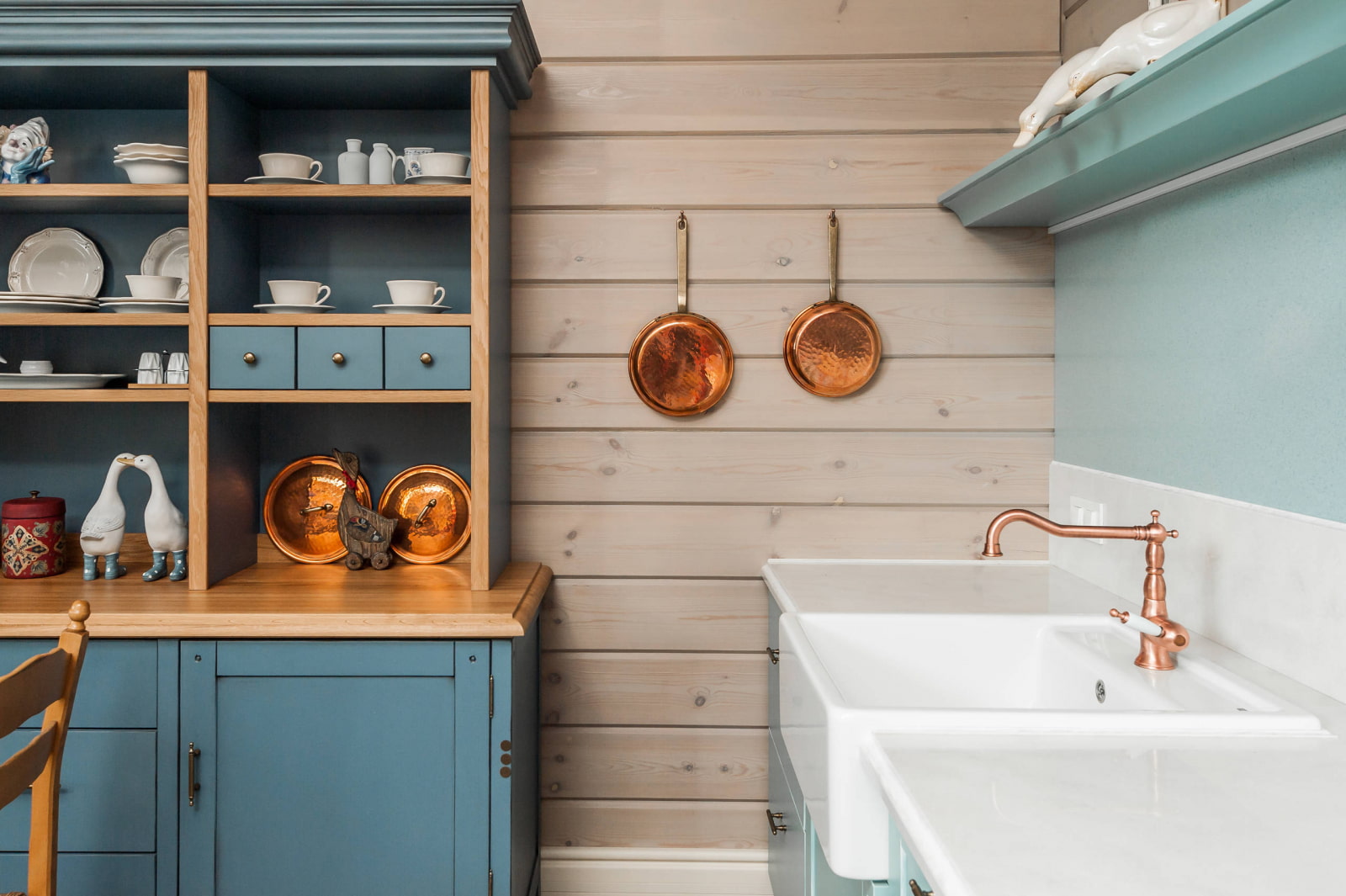 - The product should be in harmony with kitchen furniture and appliances. The universal colors are white and metallic. A stainless steel sink will fit well into a modern interior, but more noble materials and colors are suitable for a rustic and classic style.
