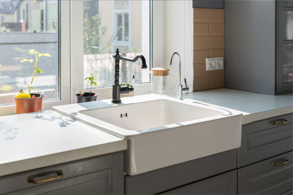 The disadvantage of a ceramic kitchen sink is its weight: installation will require the help of specialists. Such a product must be protected from any kind of mechanical stress.