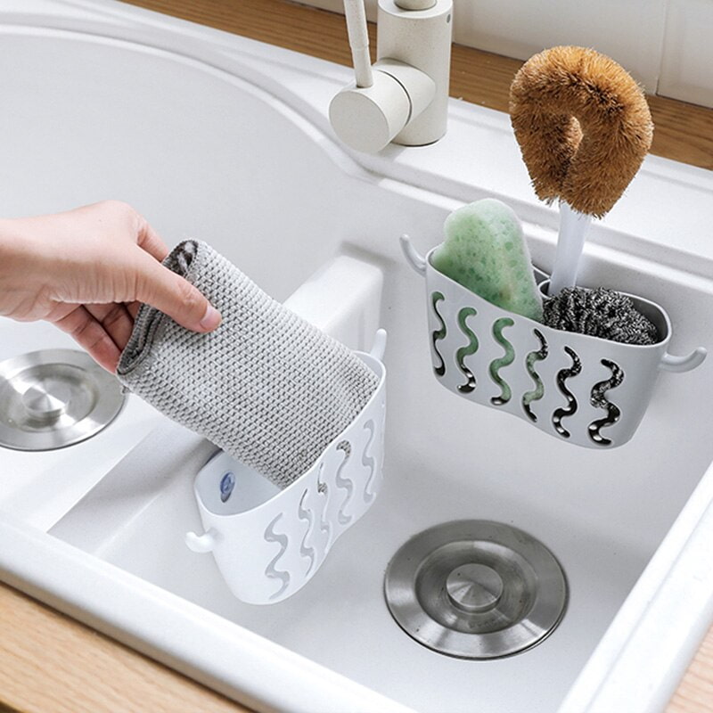 A special small organizer is attached to the inside of the sink using magnets or hooks. Helps keep order in the kitchen and collect in one place all the tools at hand: sponges, rags, brushes, gloves. Water from them flows directly into the sink through the holes in the bottom of the accessory.