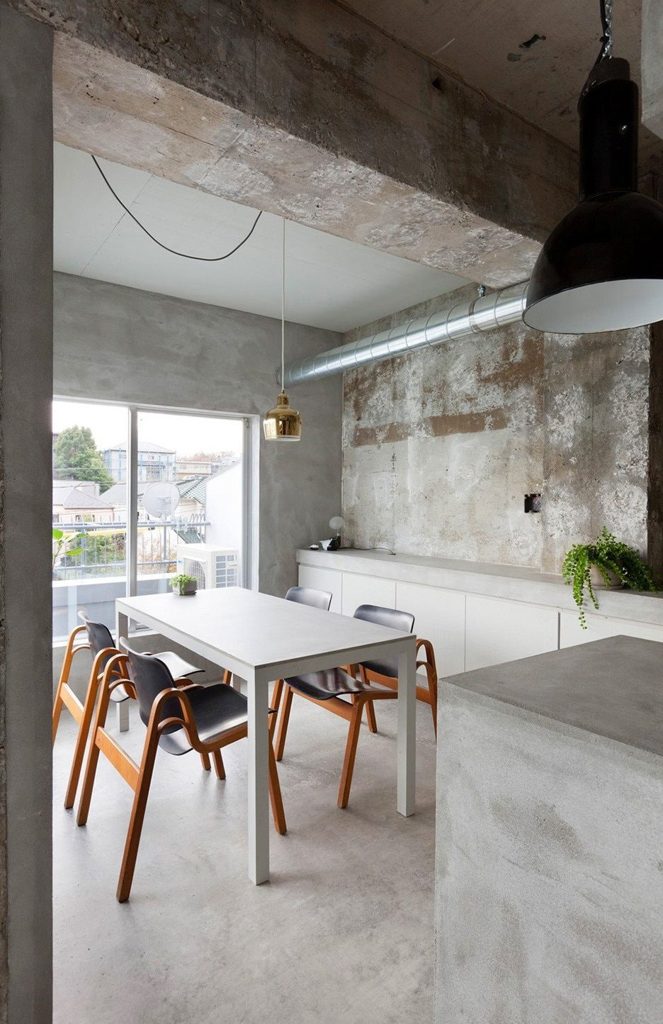 In the photo there is a wall under concrete in a modern interior.