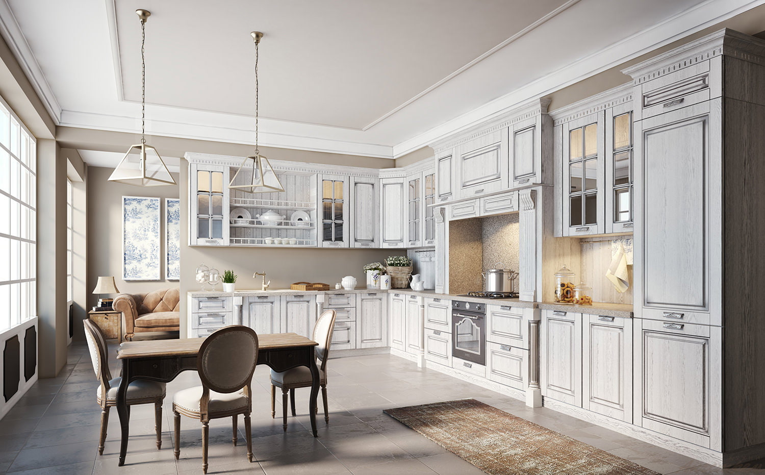The tone of the entire room is set using a kitchen set. Therefore, the selection of furniture can be the first step in creating a kitchen design in the "classic" style. The main criteria for choosing furniture are solidity, quality and elegance.