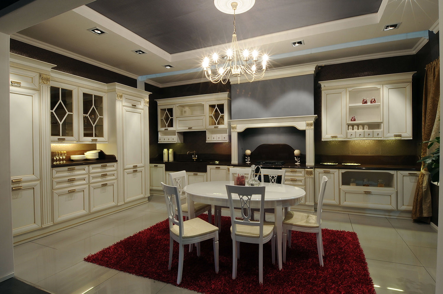 - Good lighting is one of the keys to a classic kitchen. Not only a beautiful chandelier will be appropriate, but also additional lighting.