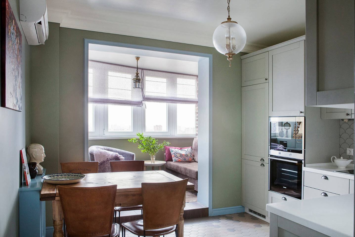 Redevelopment kitchens with access to the balcony is to combine these premises. The simplest and most inexpensive option is to insulate, dismantle the internal glass unit with a door.