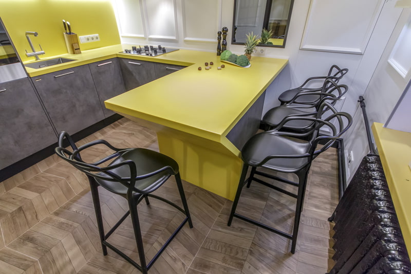Bar counter it is used in two cases: 1-2 people live in the apartment, or in addition to the dining room, a separate snack area is needed.