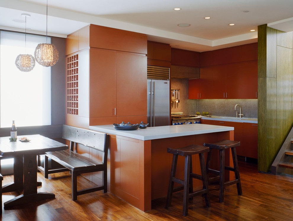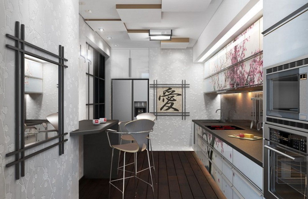 A Japanese-style kitchen with an interior thought out to the smallest detail allows you to endow the atmosphere with an oriental spirit, give the room a unique grace and create a harmonious atmosphere in which all family members will be pleased.