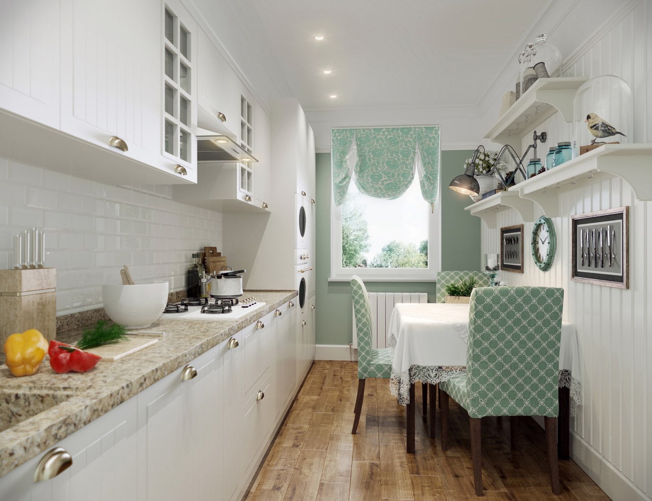 A great addition will be the decor, in the form of living plants, significantly refreshing the room, photo frames, cutting boards, potholders, figurines or handmade textiles.