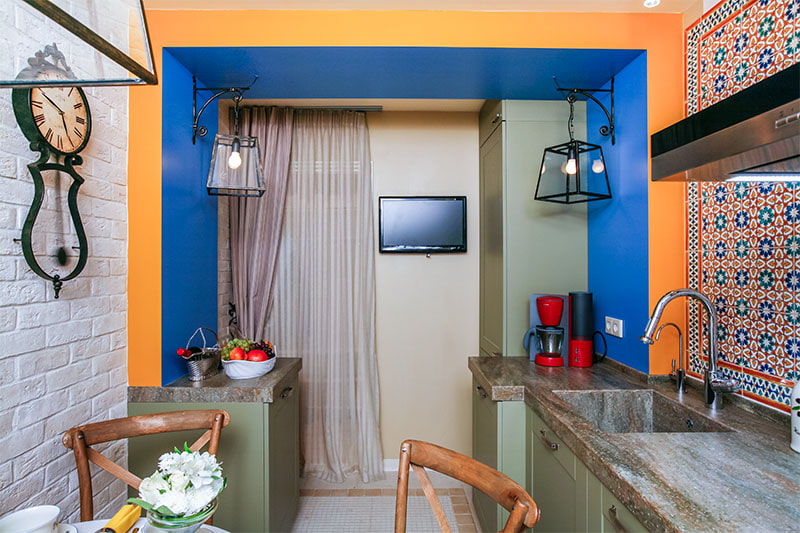 When choosing finishing materials, one should take into account the dimensions of the room. The more spacious the kitchen, the larger the area can be tiled with brightly patterned tiles. In rooms that are modest in size, it is better to give preference to tiles of a non-standard shape, made in one color.
