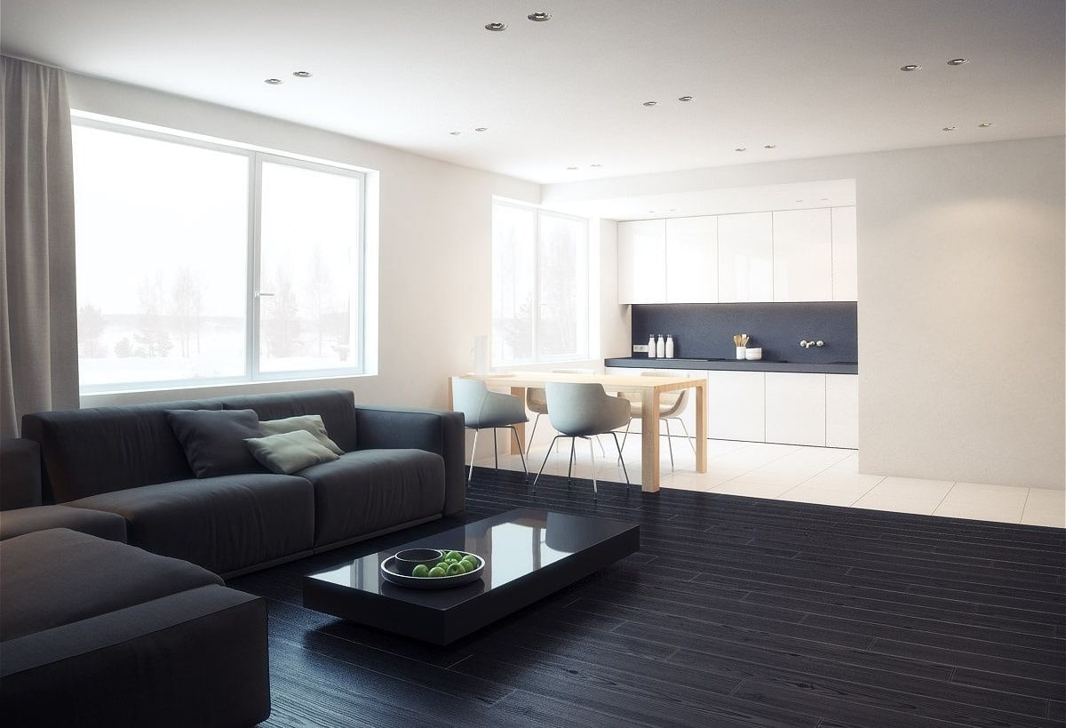 For style, the classic black and white combination remains relevant: a dark floor contrasting against the background of white walls or furniture.