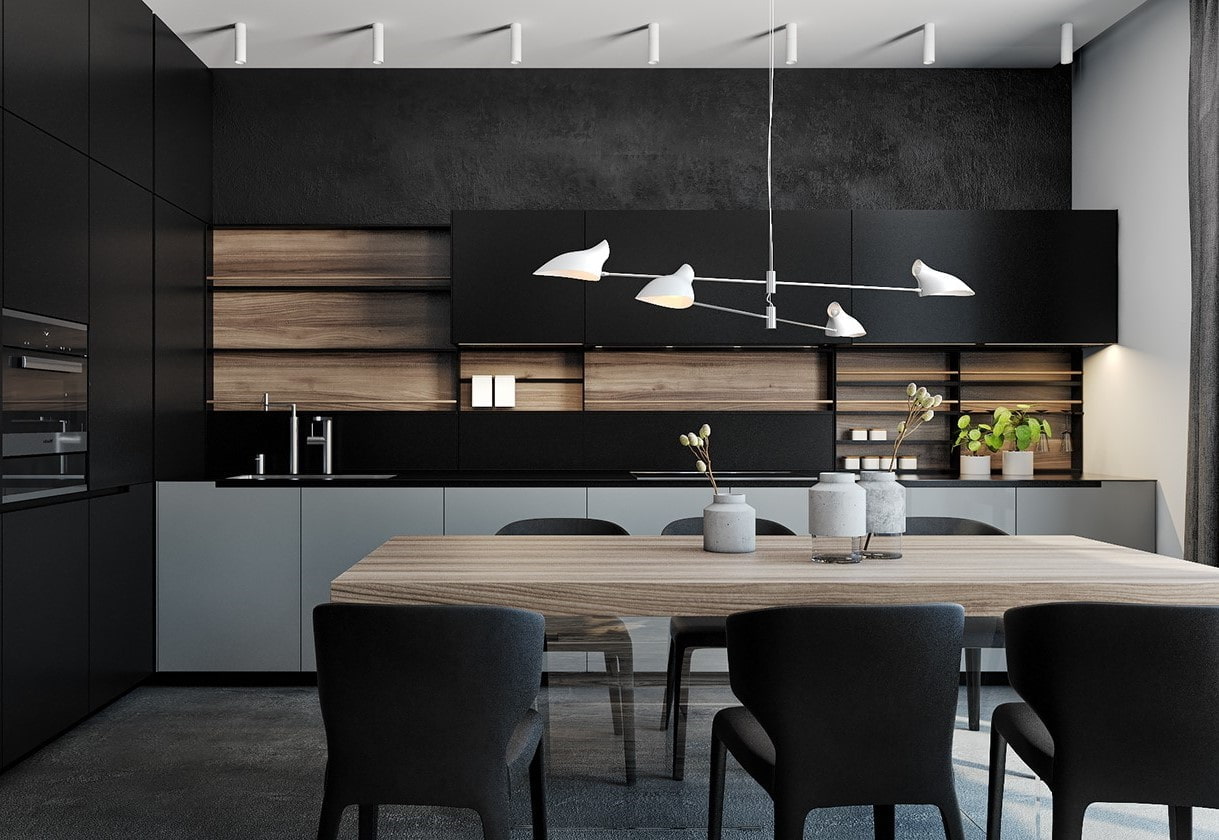 The most respectable and noble appearance is the black kitchen. When choosing a dark range in a room, you need to think about high-quality lighting.