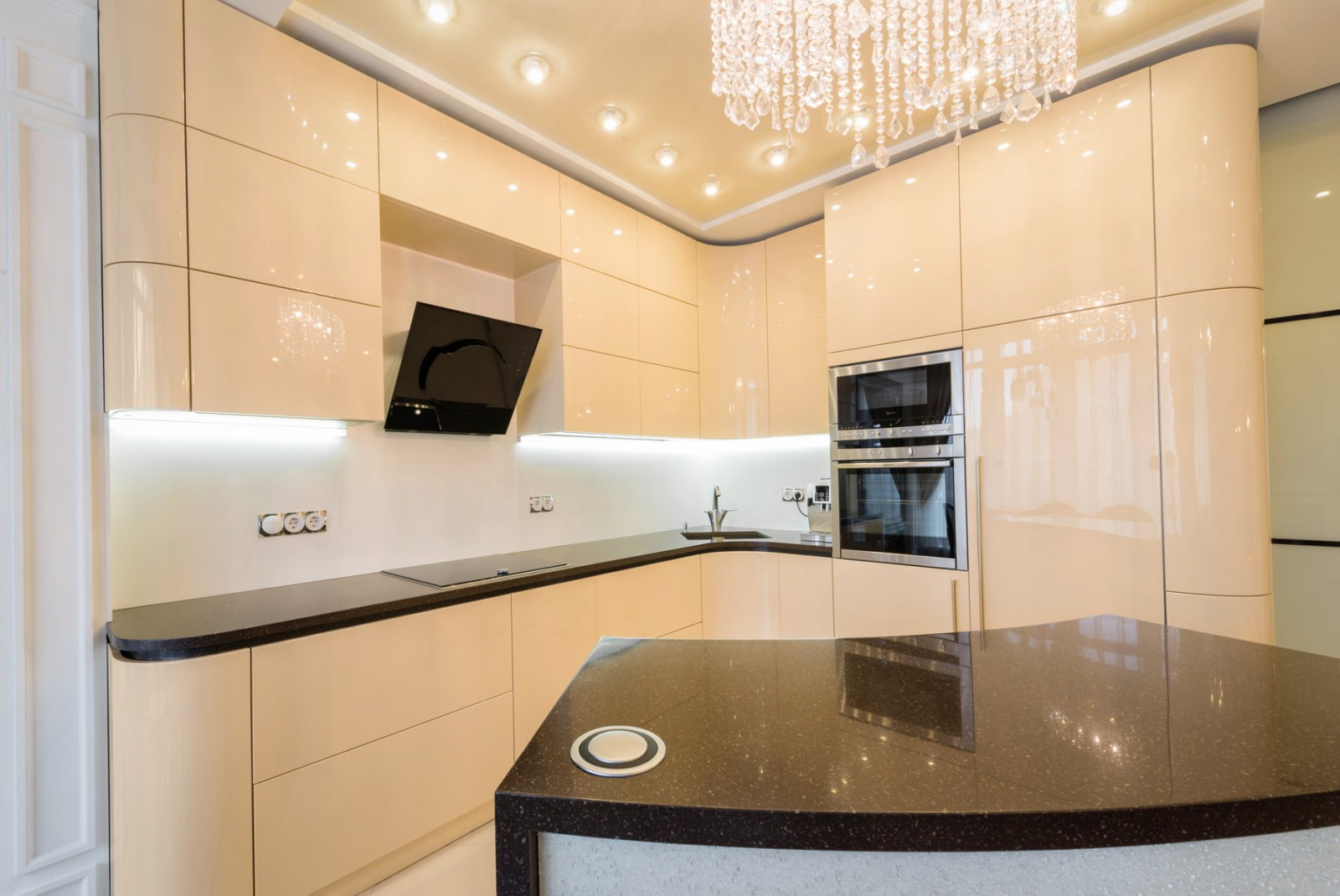 The design of a glossy kitchen depends primarily on the overall chosen style. It should immediately be noted in which styles the glossy facades in the interior will be irrelevant: