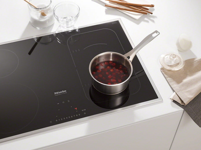 There are also induction hobs "without burners". Their working surface is located under the entire area, the device independently determines the installed dishes and understands exactly where it needs to be heated.