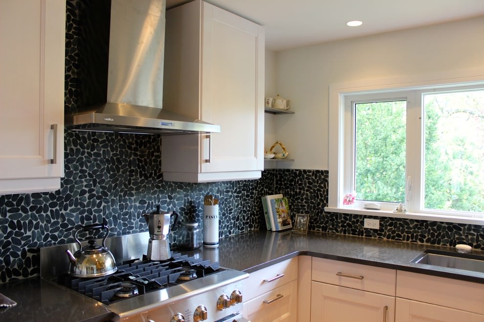 River or rock pebbles of different colors require cleaning in order to avoid the appearance of mold in the gaps between the stones, if it is a surface in the kitchen with high humidity, or an apron.