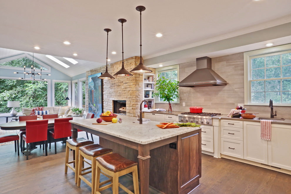 Decorative or natural stone expands the possibilities for changing the look of the kitchen. It creates a striking look, it is a practical and durable material that expands the limits of its application. Below are photo examples of the use of stone on the walls of the kitchen.