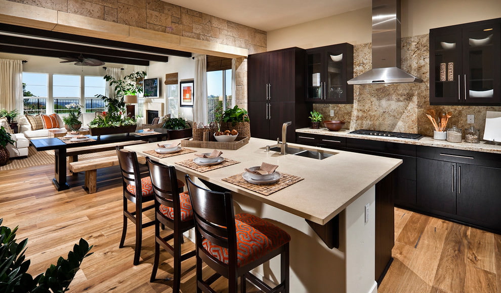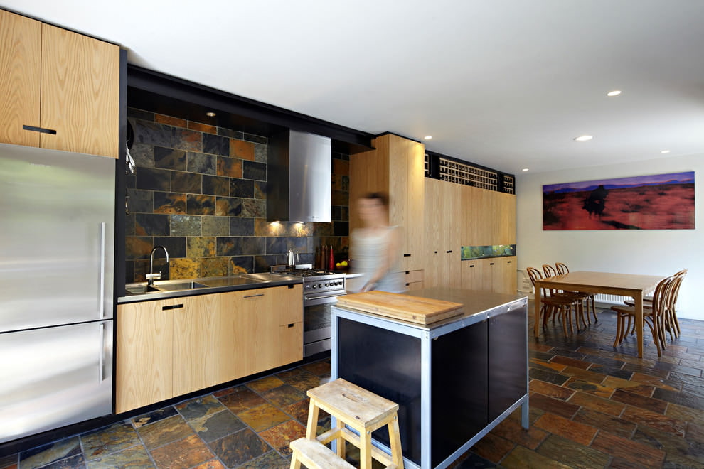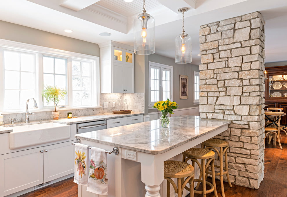 Differs in uniqueness of origin and inimitable exclusivity. Natural masonry carries the energy of naturalness, which fills the kitchen with coziness. It is durable, does not require special care, shock-resistant, tolerates changes in moisture and temperature.