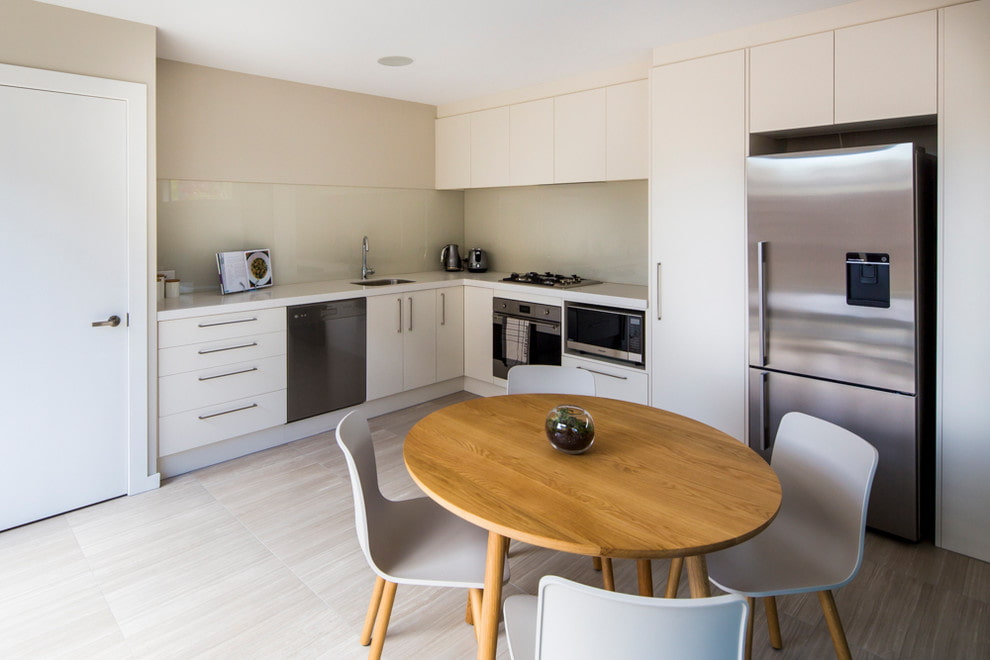 Competent placement of the round table will facilitate free movement in a small space and unhindered access to the kitchen set, for example, during cooking or when serving food.
