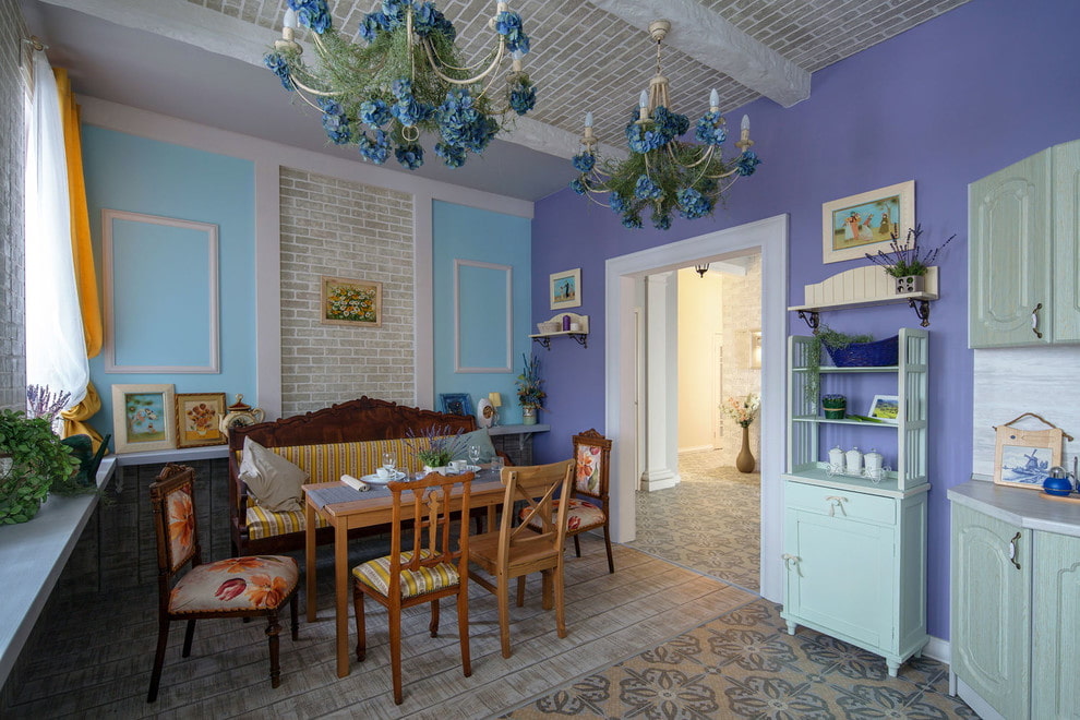 Refined, light and pure lilac shades will allow you to emphasize the charm and romance of the Provence style. One of the most commonly used colors is lavender, which is found in wall decoration, furnishings or decor.