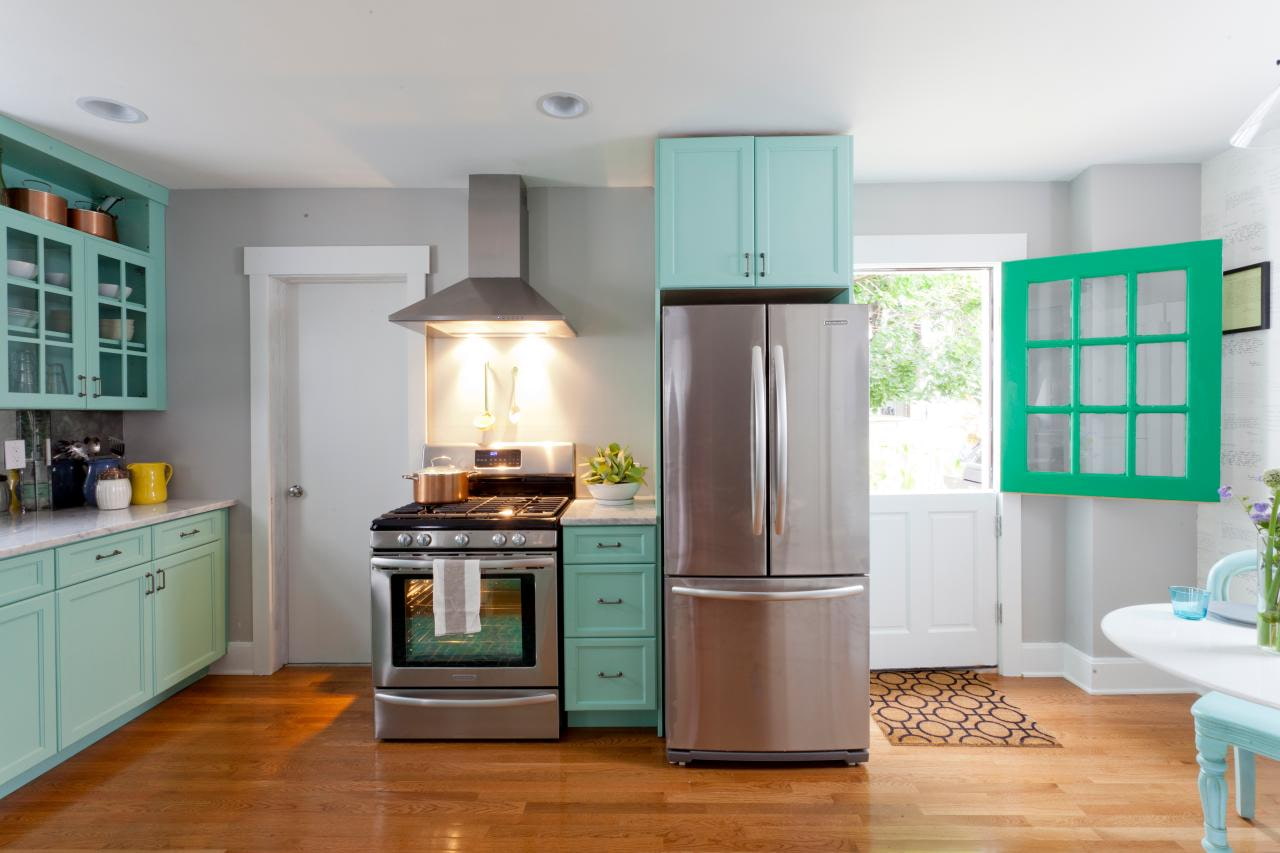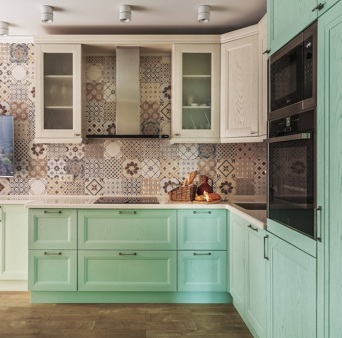 A win-win option is monochrome. In the design of the kitchen, you can use any shades of green, blue, sea wave.