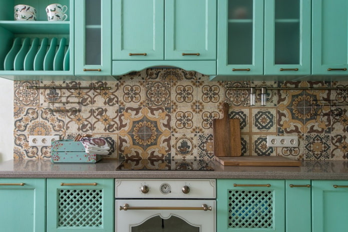 Love these shades, but not enough to make them dominant? Prefer small, accent surfaces: apron will fit perfectly. On large areas, a mint-colored apron can only be near the stove, on small areas it can take up all the space above the countertop.