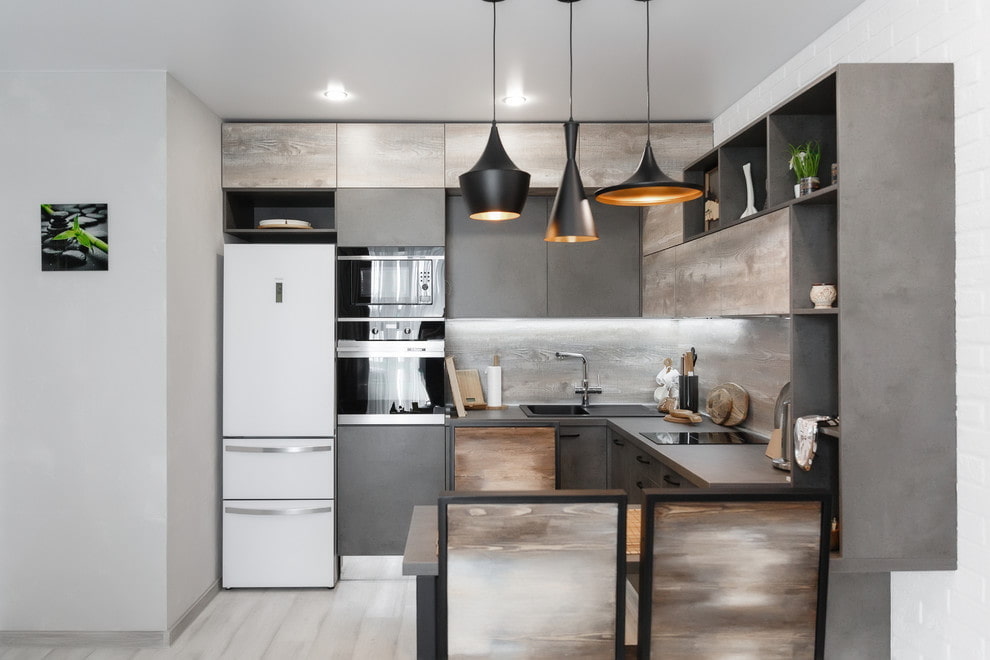 The bar counter is an elegant continuation of the working area, adding liveliness and style to the interior. There are many different types of racks, for example, U-shaped, semicircular, retractable and other models, which allow not only to decorate the room and become its interior addition, but also provide a fairly convenient design solution for small and cramped kitchens.