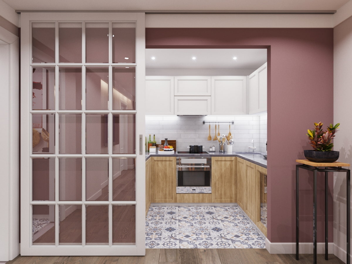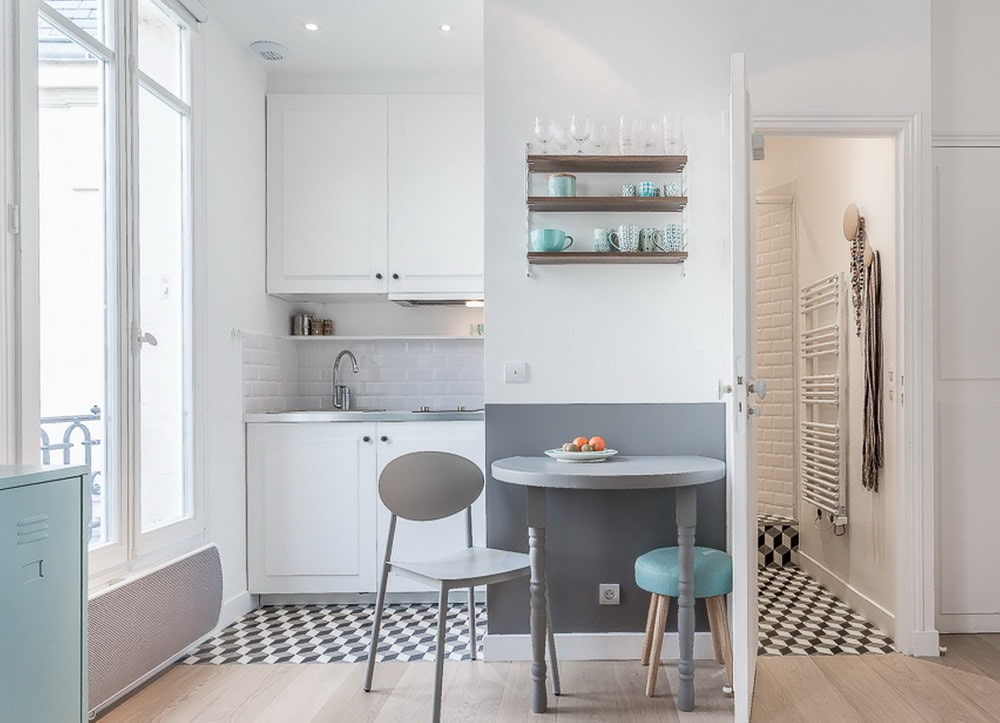 It is a recess that does not have blind partitions that would separate it from other rooms. The niche kitchen can be located in the living room, corridor or even in the pantry.
