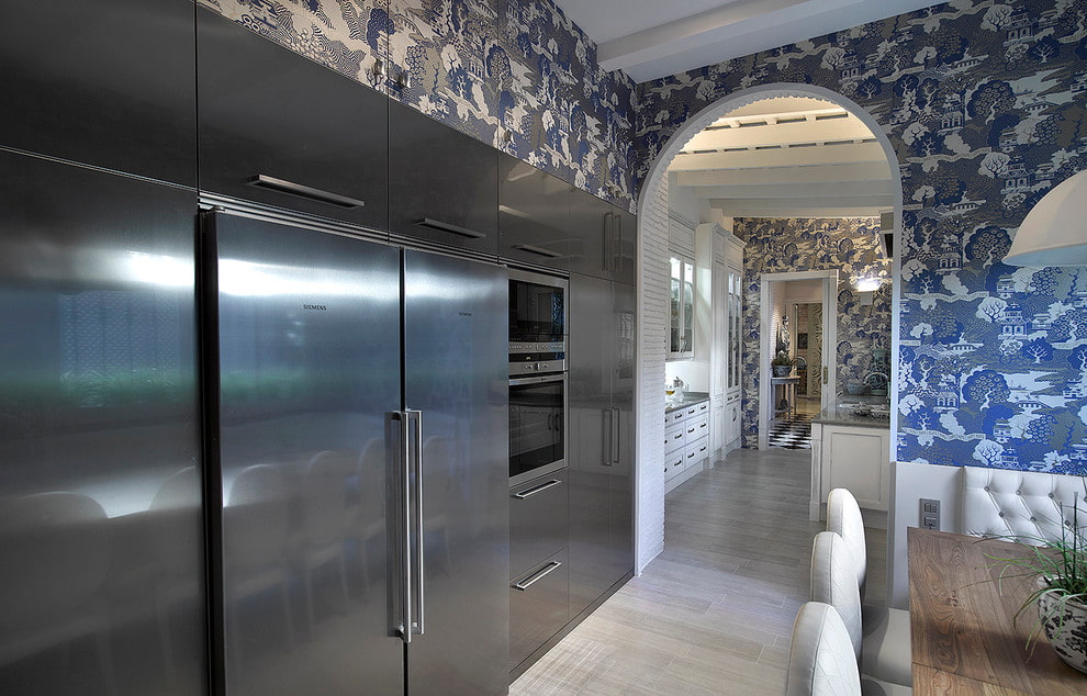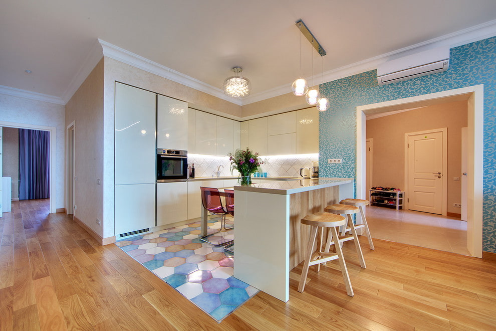 The only minor drawback of the kitchen design with an arch is that noise and all odors that arise during cooking will freely spread through the passage to other rooms.